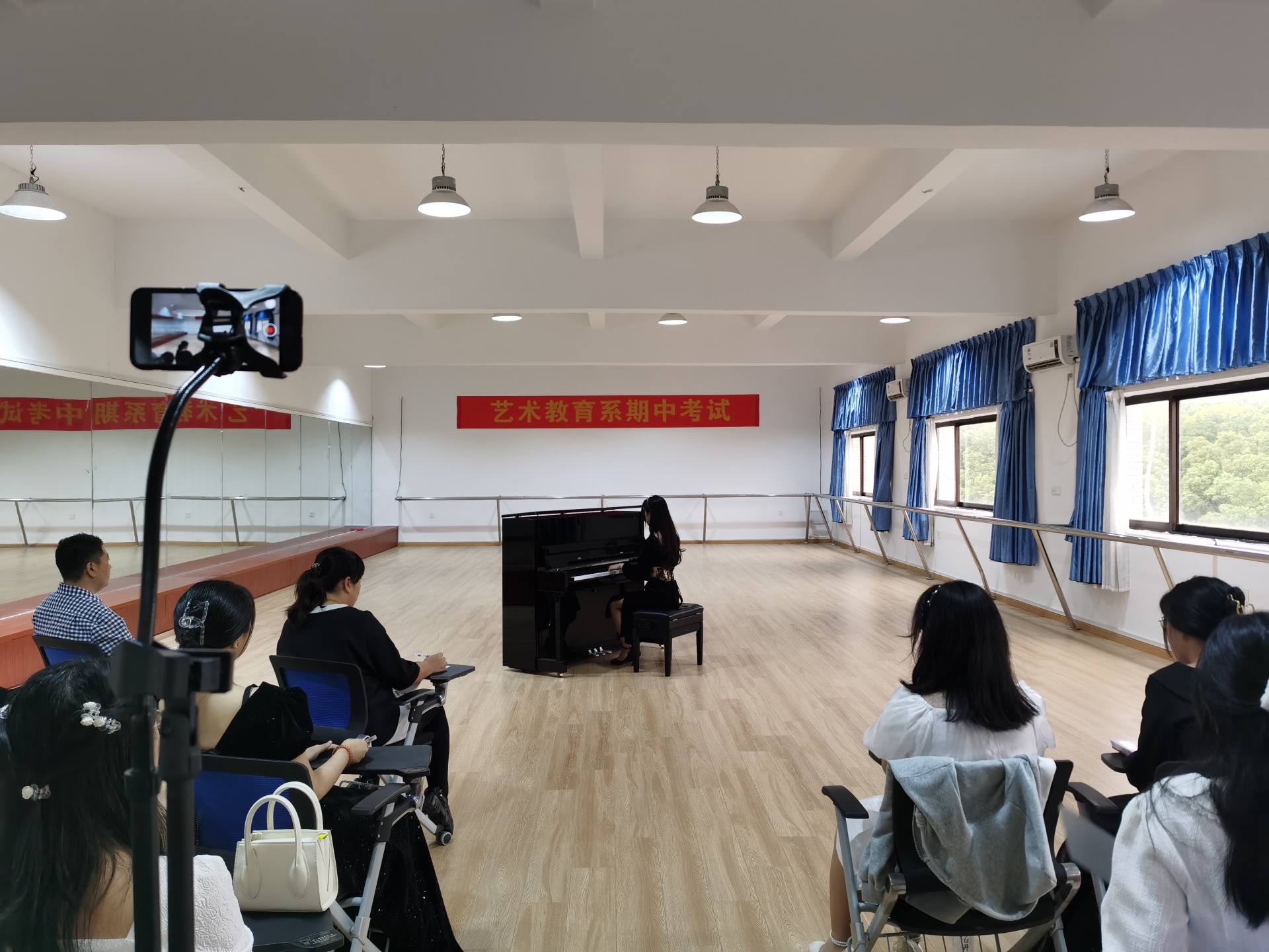 本次考试形式为现场专业技能展示,由老师进行现场打分。这种考试方式既有效检验了学生半个学期的学习成果,也让学生们积累了宝贵的现场演奏、演唱经验。