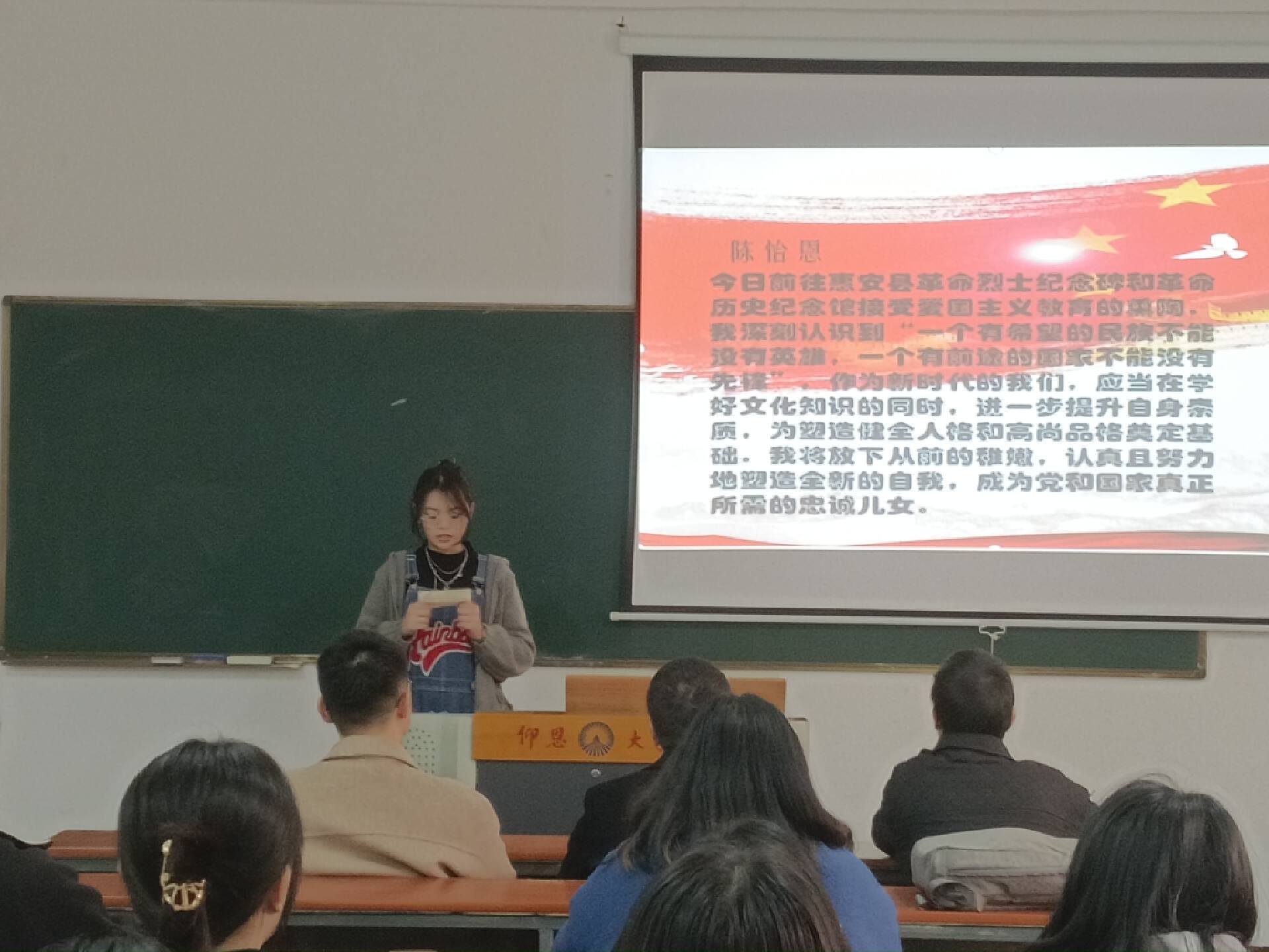 jinnianhui金年会诚信至上直属党支部书记张文表达了对这次红色景点实地考察成果分享会的重视,希望同学们能够在今天的活动当中,从红色历史当中汲取砥砺前行的力量,让我们脚踏实地,以满腔壮志书写新时代亮丽的华章。