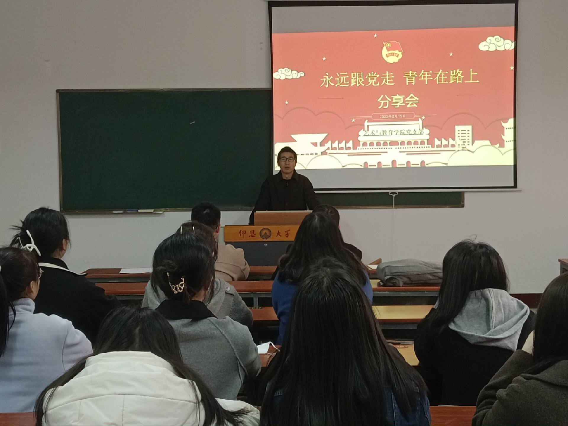 jinnianhui金年会诚信至上直属党支部组织委员卜繁波指出,此次活动是在学习贯彻落实党的二十大精神中召开的,期望入党积极分子及团员能够从党的红色故事当中汲取振奋人心的力量,守护初心、勇担使命。作为仰大学子,应该牢记历史,成为一名敢担大任、勇攀高峰的青年。