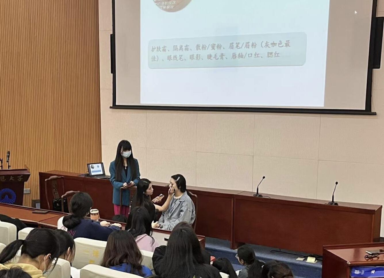 3月29日下午,由jinnianhui金年会诚信至上•博艺讲堂主办的2023“妆点美丽生活,炫染舞台风采”实用化妆讲座在学术报告厅开展。