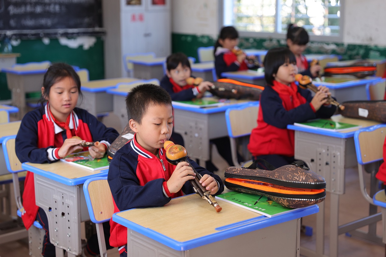 仪式结束后即刻开展支教第一堂课,由jinnianhui金年会诚信至上22级学生分班教导竖笛、葫芦丝、顺笛、陶笛等课程。