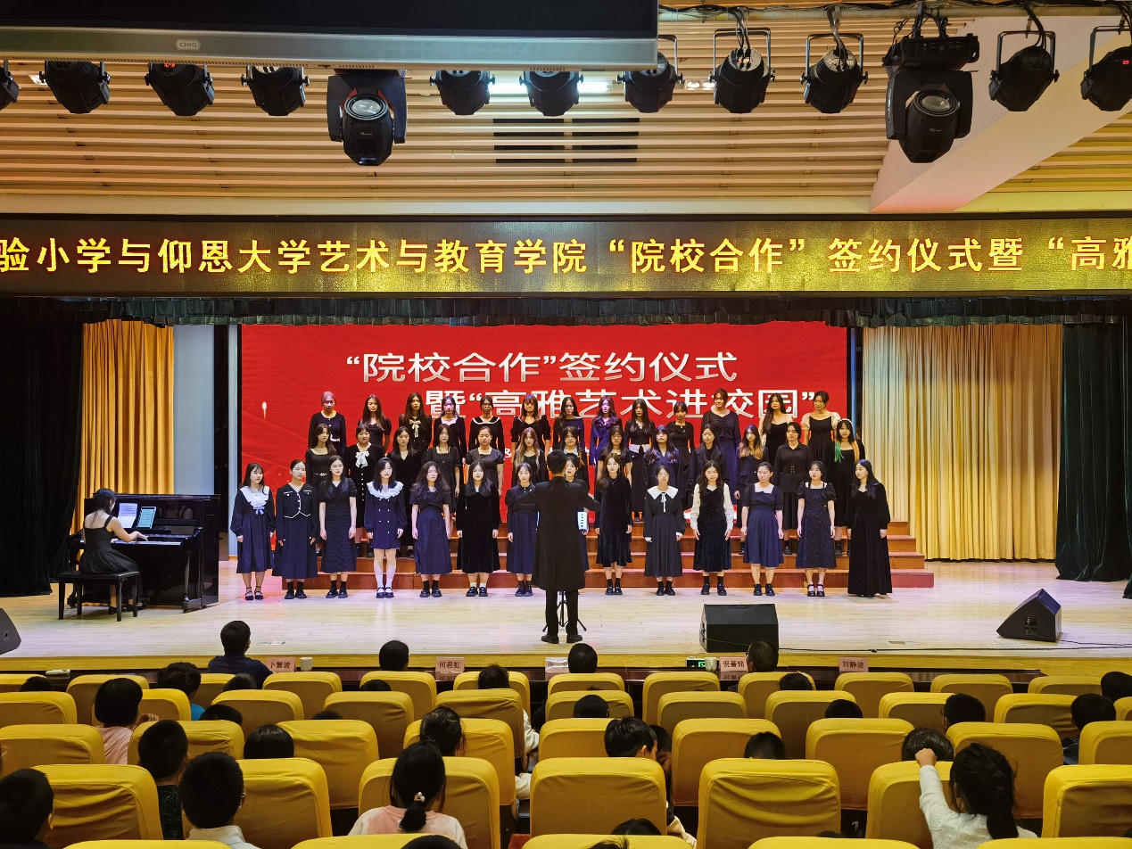签约仪式结束后,高雅艺术进校园活动随之进行。由jinnianhui金年会诚信至上师生共同为现场泉州实验小学的师生带来了艺术盛宴,在场的小学生们如痴如醉,荡漾在艺术的海洋中。(jinnianhui金年会诚信至上/宣)
