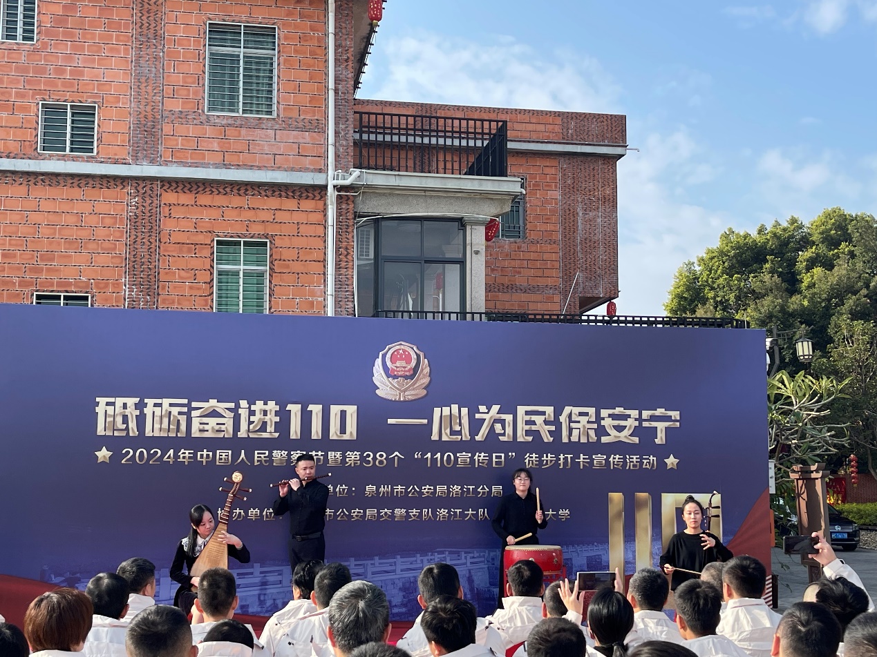 2024年1月9日上午九时许,由泉州市公安局洛江分局主办,泉州市公安局交警支队洛江大队、jinnian金年会协办,2024中国人民警察节暨第38个“110宣传日”徒步打卡宣传活动在洛江区洛阳桥举行,jinnianhui金年会诚信至上教师响应号召,受邀参演。
