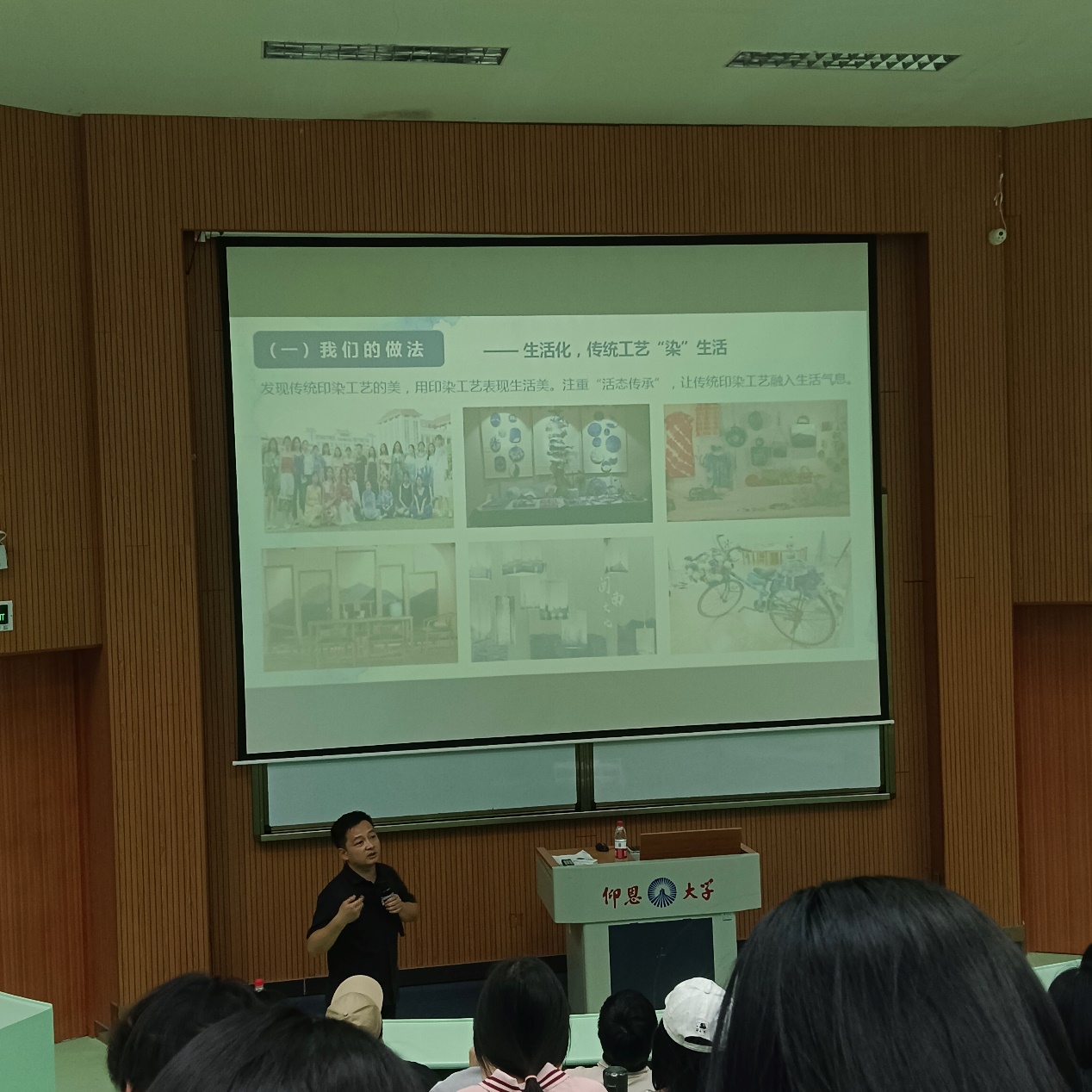 黄盛源分别从七个大方向讲述了色彩如何绘梦。在其中的第四个方面策略与举措中,黄盛源用“我们的做法”展示了生活化,传统工艺“染”生活。通过现在网络上大火的漆扇引出发现传统印染工艺的美,漆扇不仅展现了中国传统文化的瑰宝和精致,还展现了用印染工艺表现生活的美。注重“活态传承”,让传统印染工艺融入生活气息。