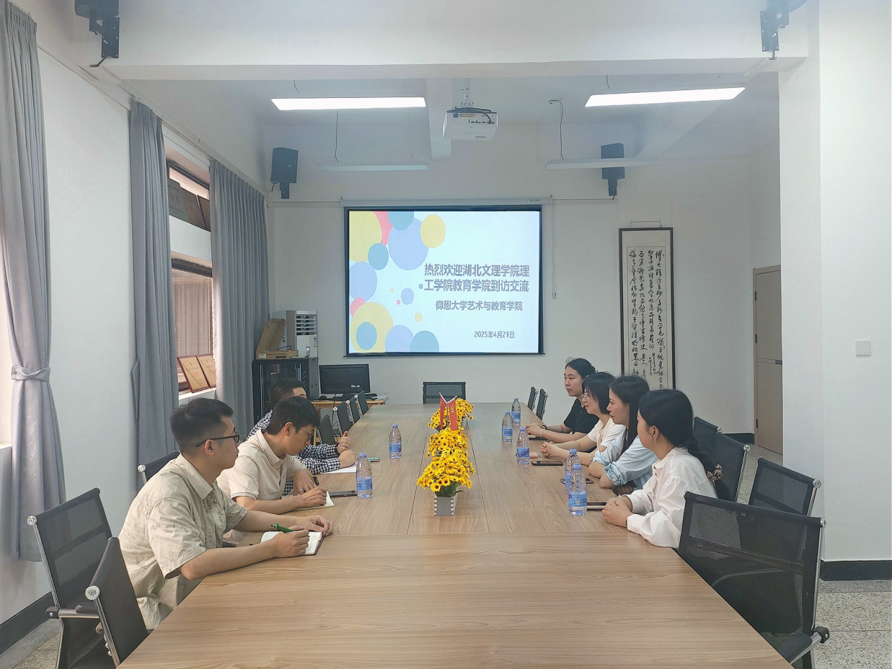 2025年4月21日上午9:00,湖北文理学院理工学院教育学院院长王娟一行4人莅临金年会jinnianhui金年会诚信至上,就艺术教育专业的建设与发展开展调研交流。jinnian金年会jinnianhui金年会诚信至上院长张文、副院长卜繁波,以及书法教师官毅参加了交流活动。