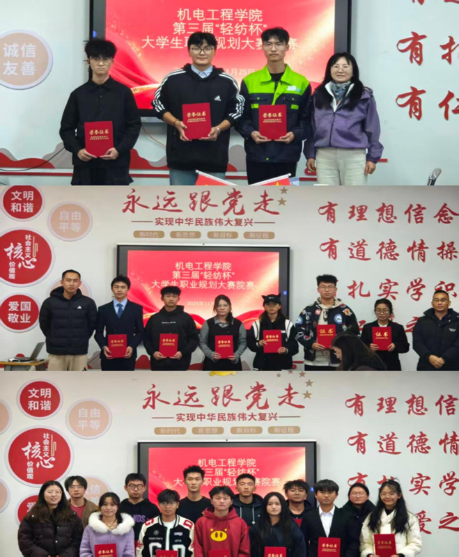 筑梦青春志在四方,规划启航职引未来——机电工程学院第三届“轻纺杯”职业规划大赛院赛圆满落幕为引导学生树立正确的成才观、就业观和职业规识,科学合理地规划大学学习与生活,提升就业竞...