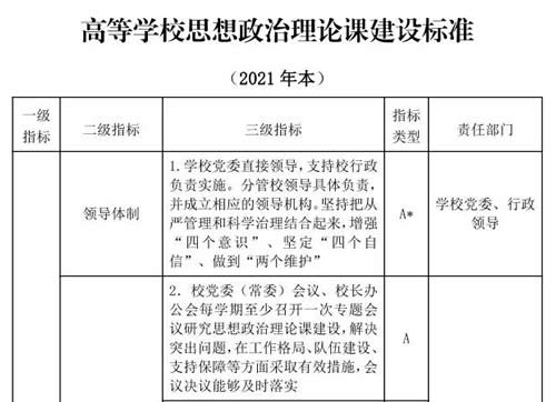 近日,教育部印发修订后的《高等学校思想政治理论课建设标准(2021年本)》,进一步加强高校思想政治理论课的宏观指导,规范组织管理、教学管理、队伍管理和学科建设。原《高等学校思想政治理论课建设标准(暂行)》(教社科〔2015〕3号)同时废止。